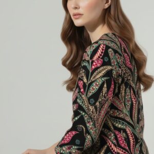 Be the first to review “Boho Chic Leaf Print Black Unstitched Suit – 09”