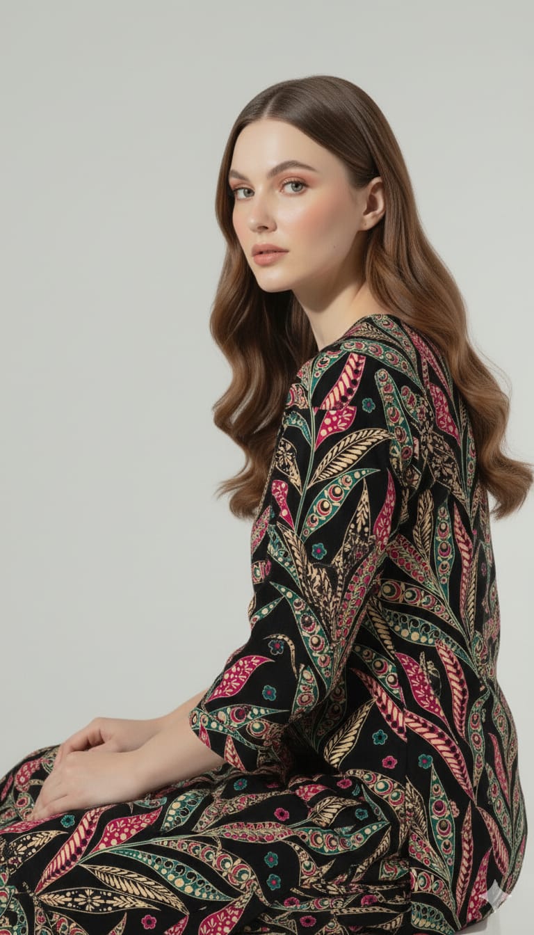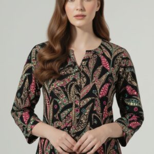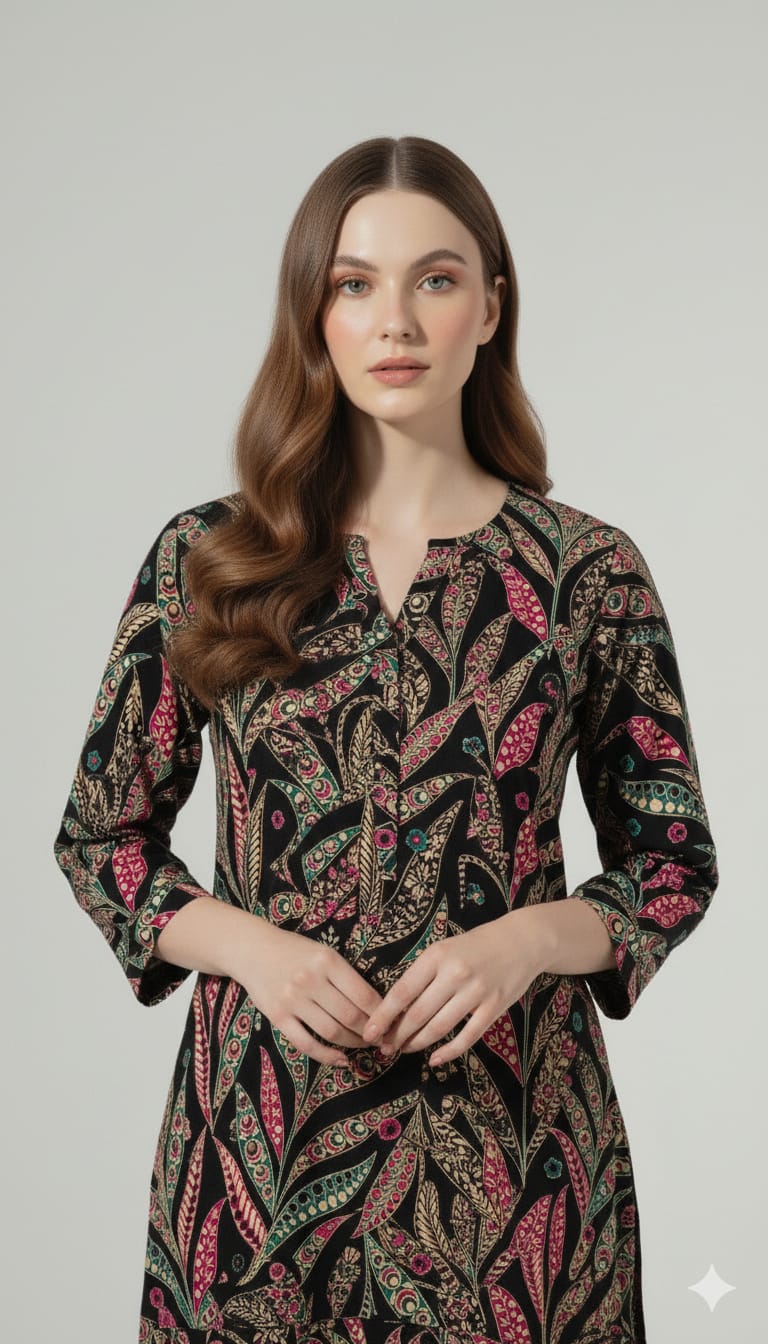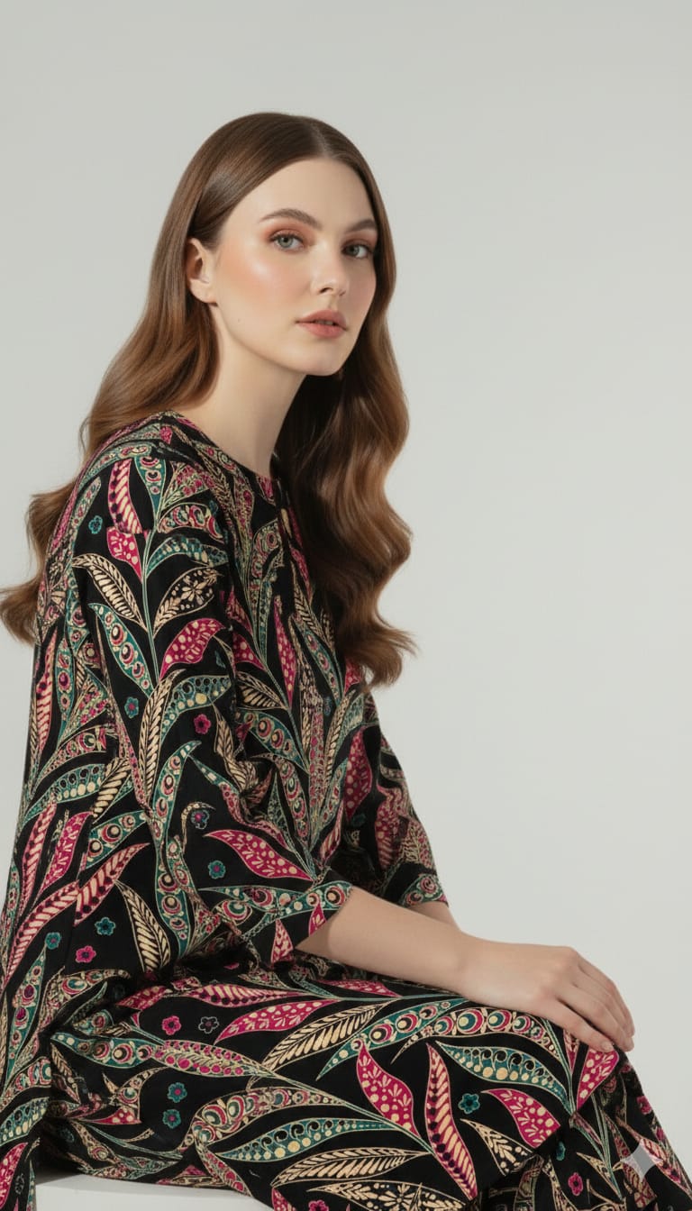 Boho Chic Leaf Print Black Unstitched Suit – 09