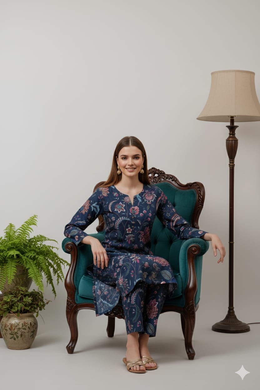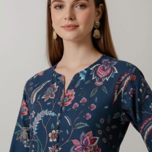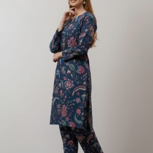 Elegant Midnight Floral Print Unstitched Suit – 18