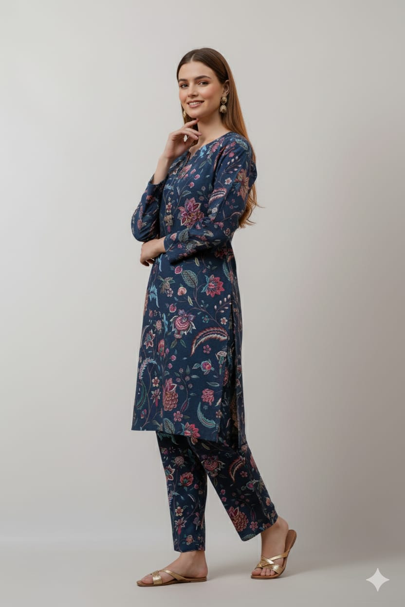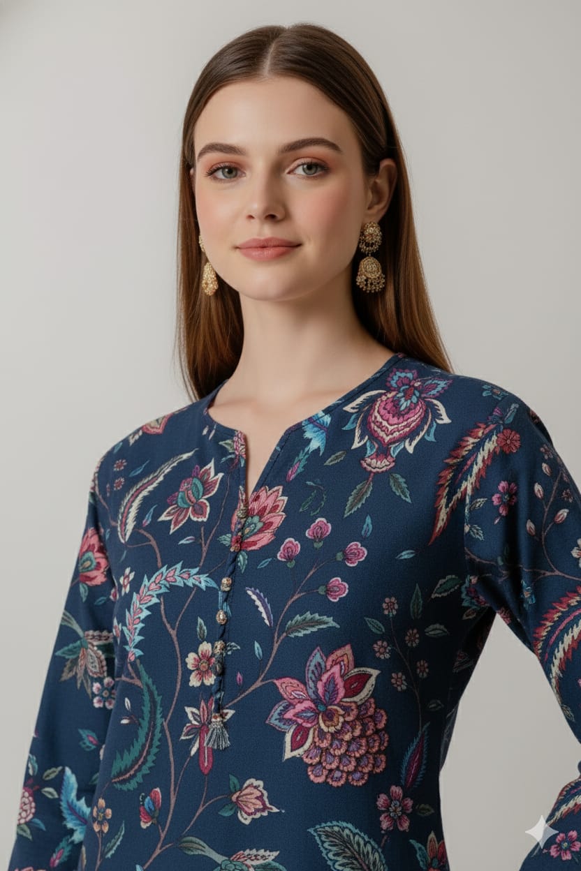 • Elegant Midnight Floral Print Unstitched Suit