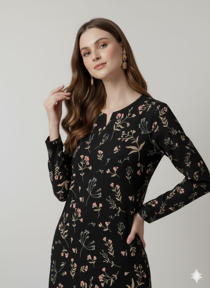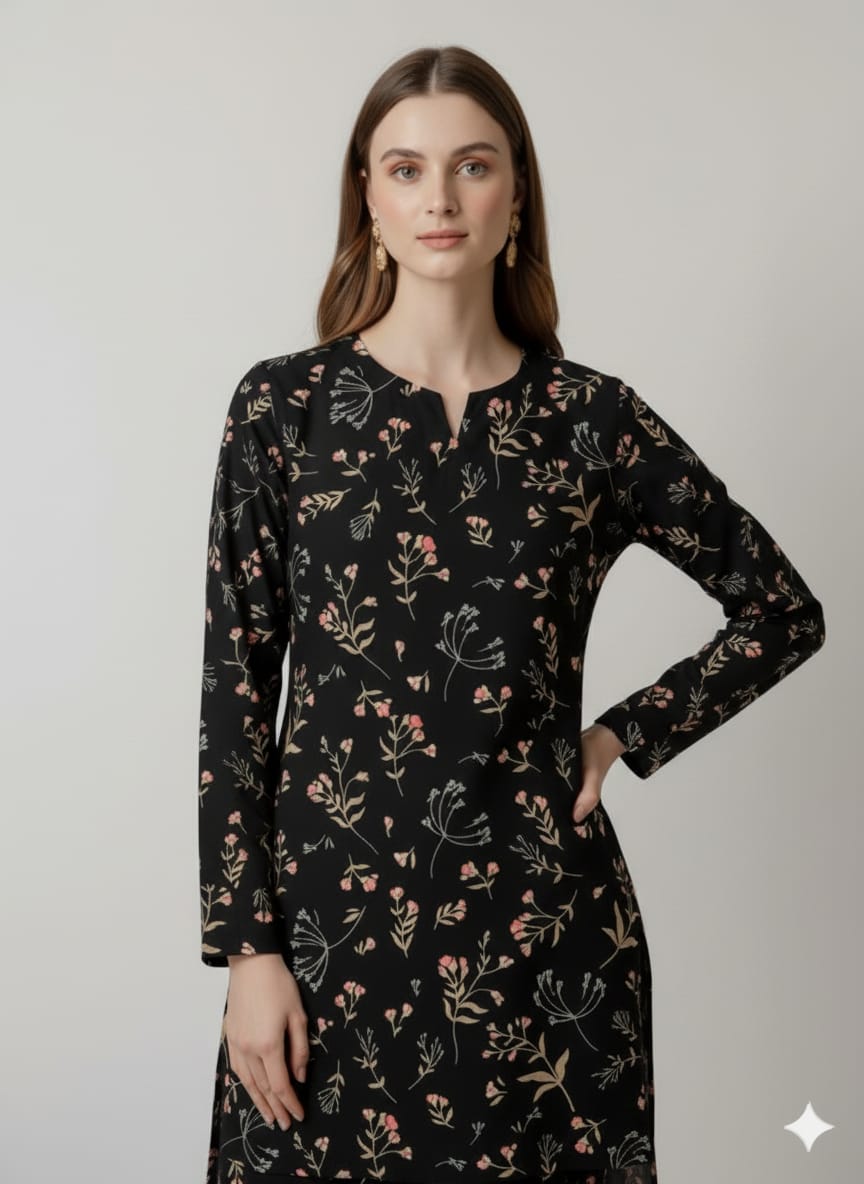 Enchanted Midnight Floral Print Black Unstitched Suit – 24