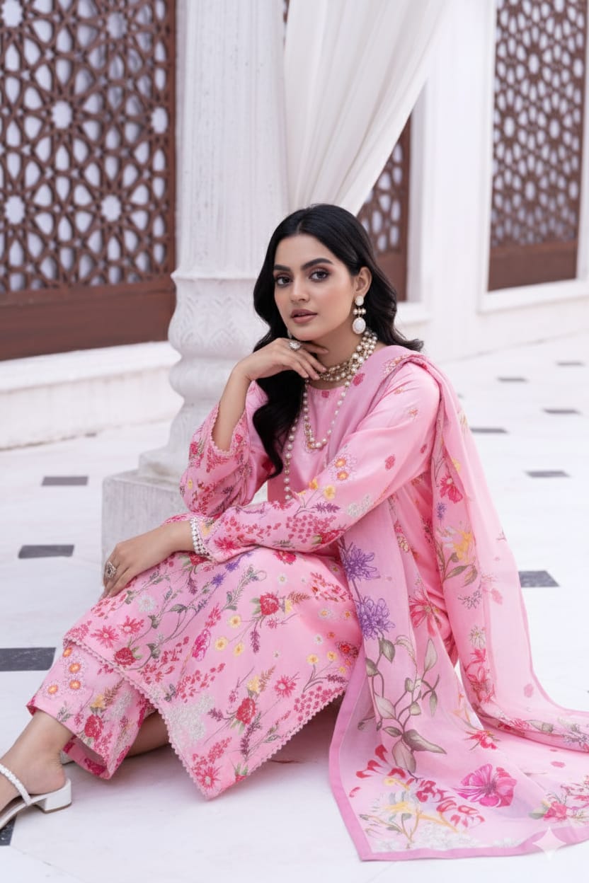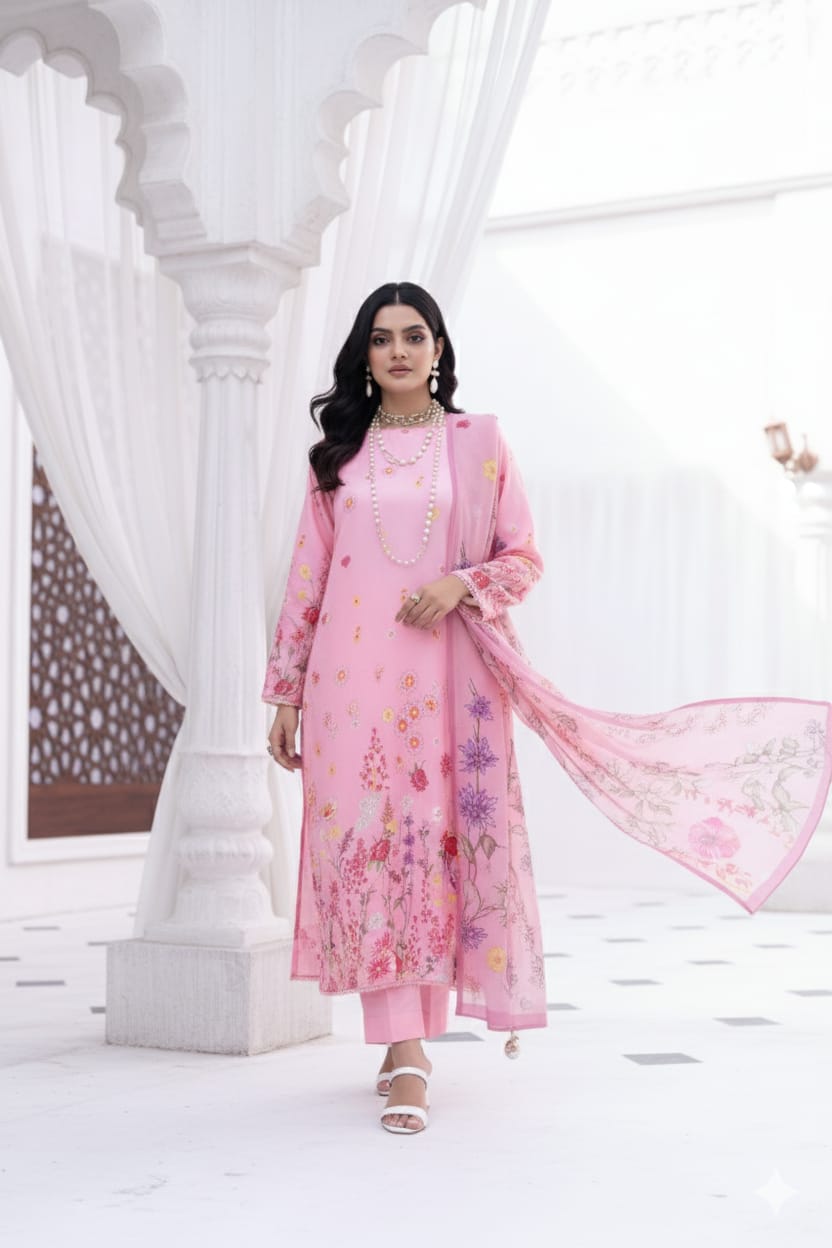 Floral Delight Pink Printed Unstitched Suit – 08