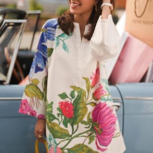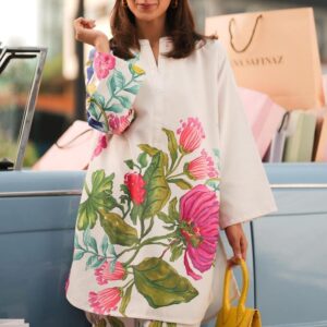 The serene ivory base serves as a beautiful canvas for bold bloom-inspired illustrations that capture attention with artistic flair. The refreshing interplay of subtle tones and statement floral details makes this suit ideal for daytime gatherings, casual outings, and semi-formal occasions. With three premium fabric options available, this unstitched suit material promises comfort, versatility, and enduring style.