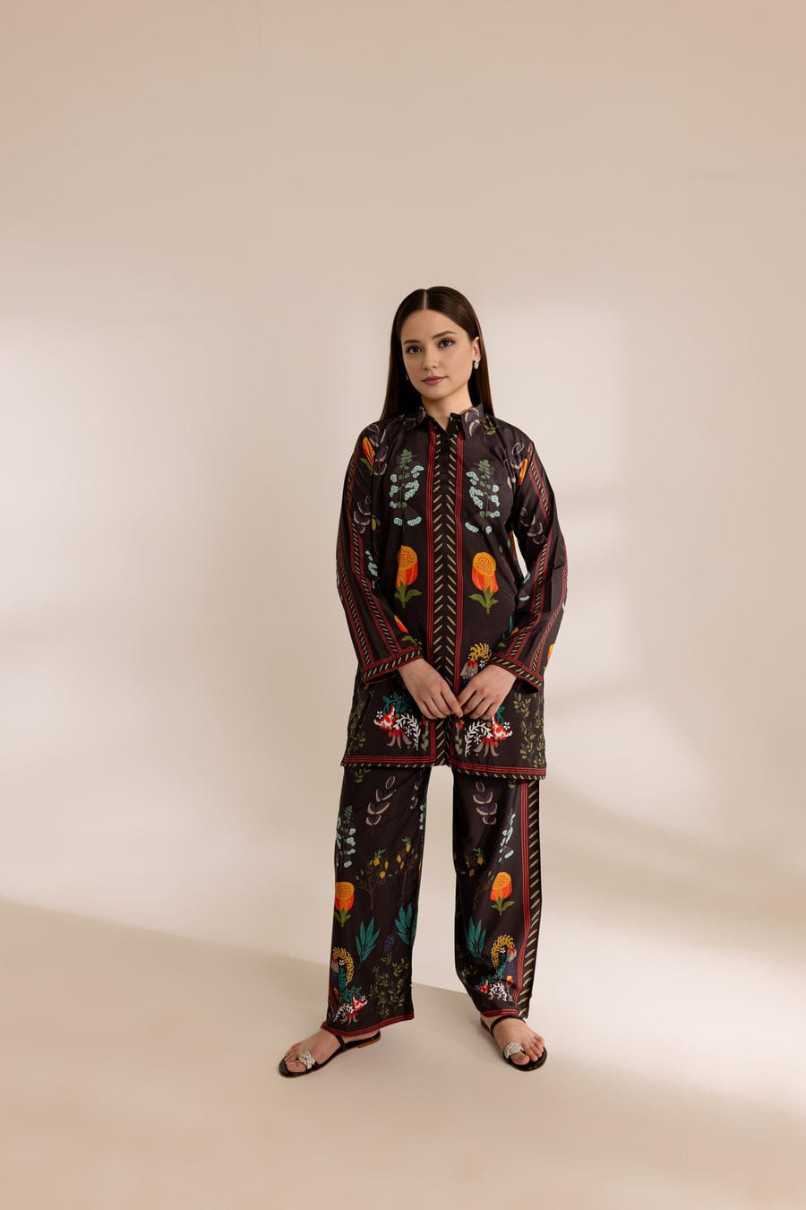 • Modern Floral Fusion Unstitched Suit