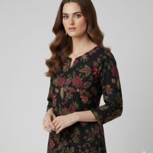 Mystic Floral Charm Black Printed Unstitched Suit – 25