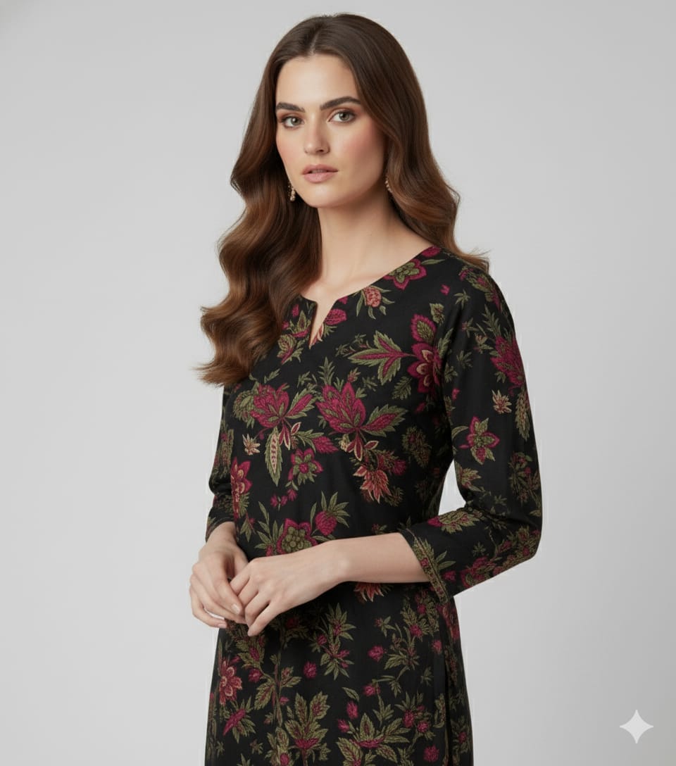 • Mystic Floral Charm Black Printed Unstitched Suit
