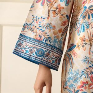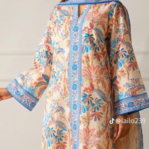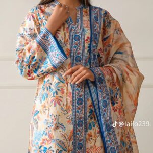 The soothing peach and ivory palette is beautifully complemented by artisan-inspired border detailing that evokes cultural richness and artistic heritage. Whether styled for daytime gatherings, casual outings, or semi-formal events, this suit material delivers timeless appeal and versatile charm suitable for a variety of looks.