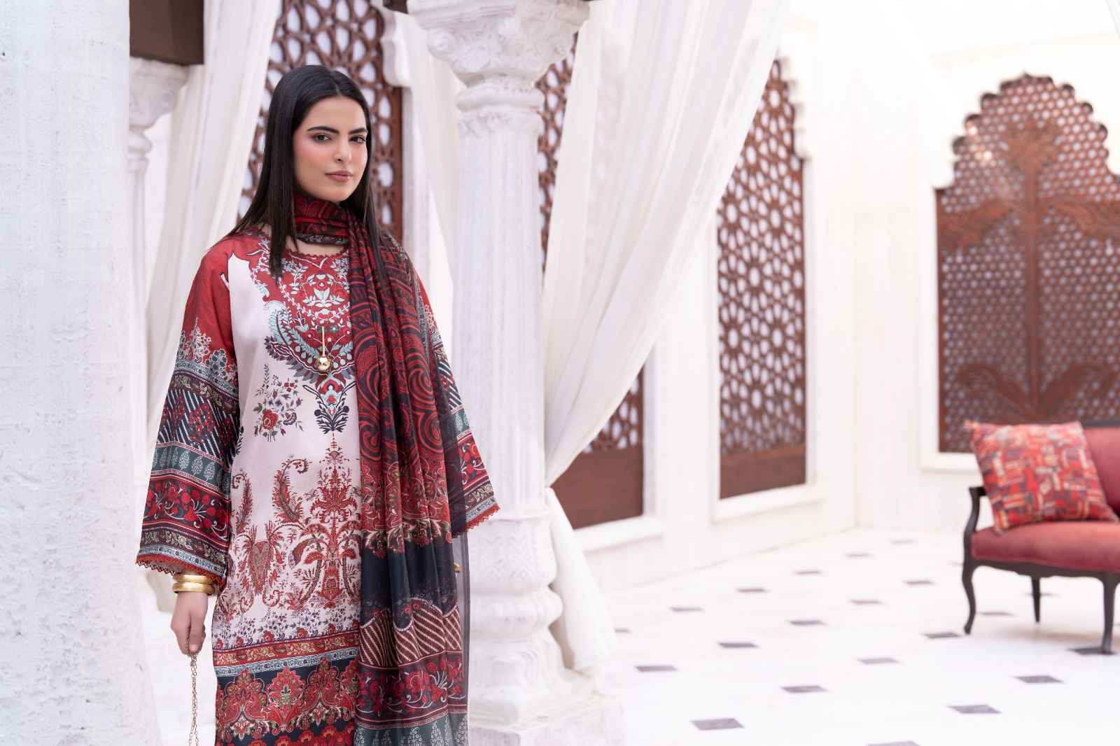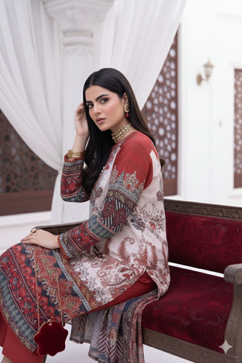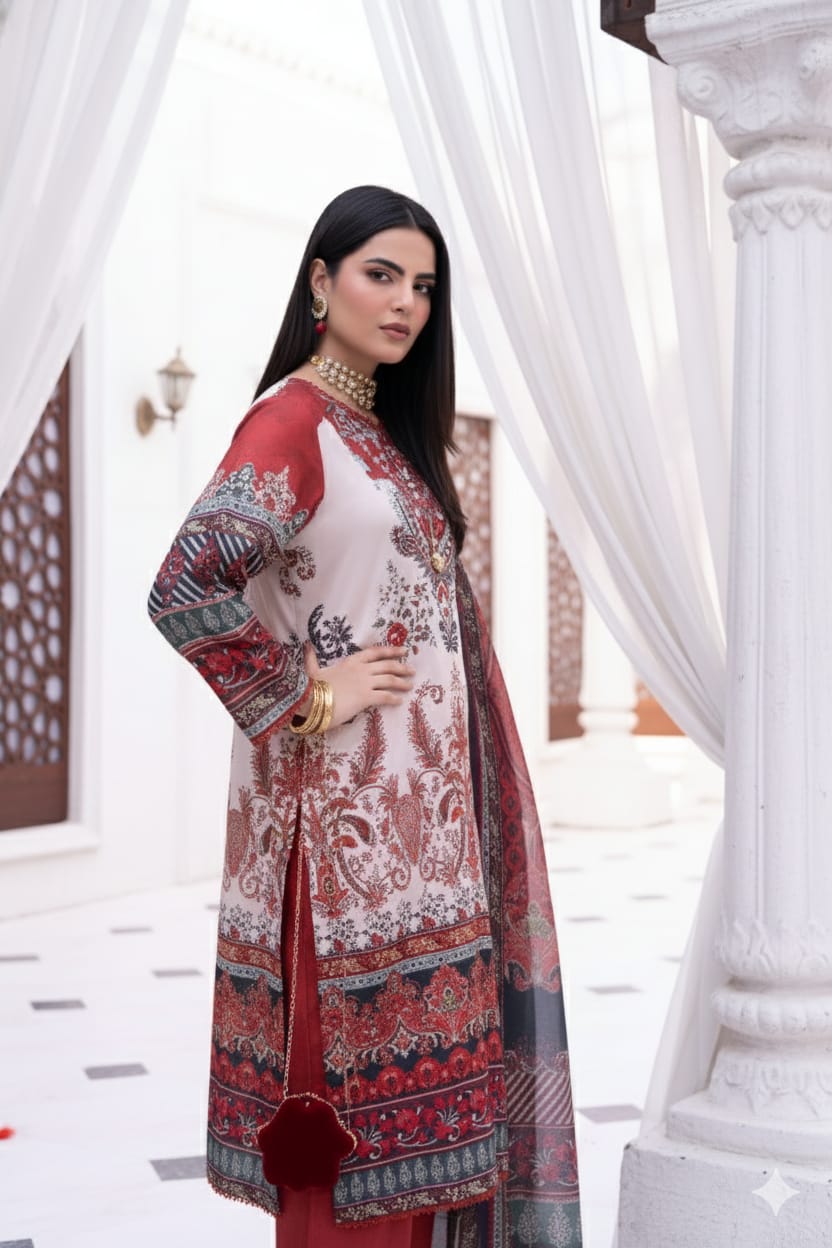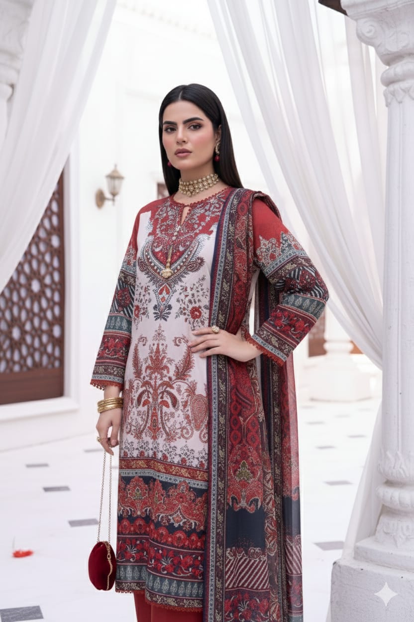 Royal Maroon & Beige Heritage Printed Unstitched Suit – 17