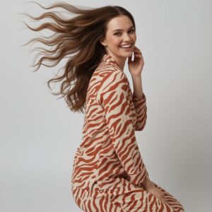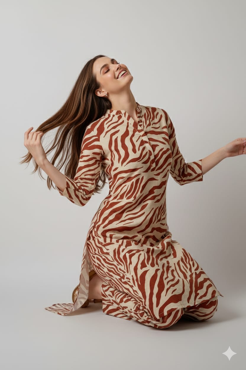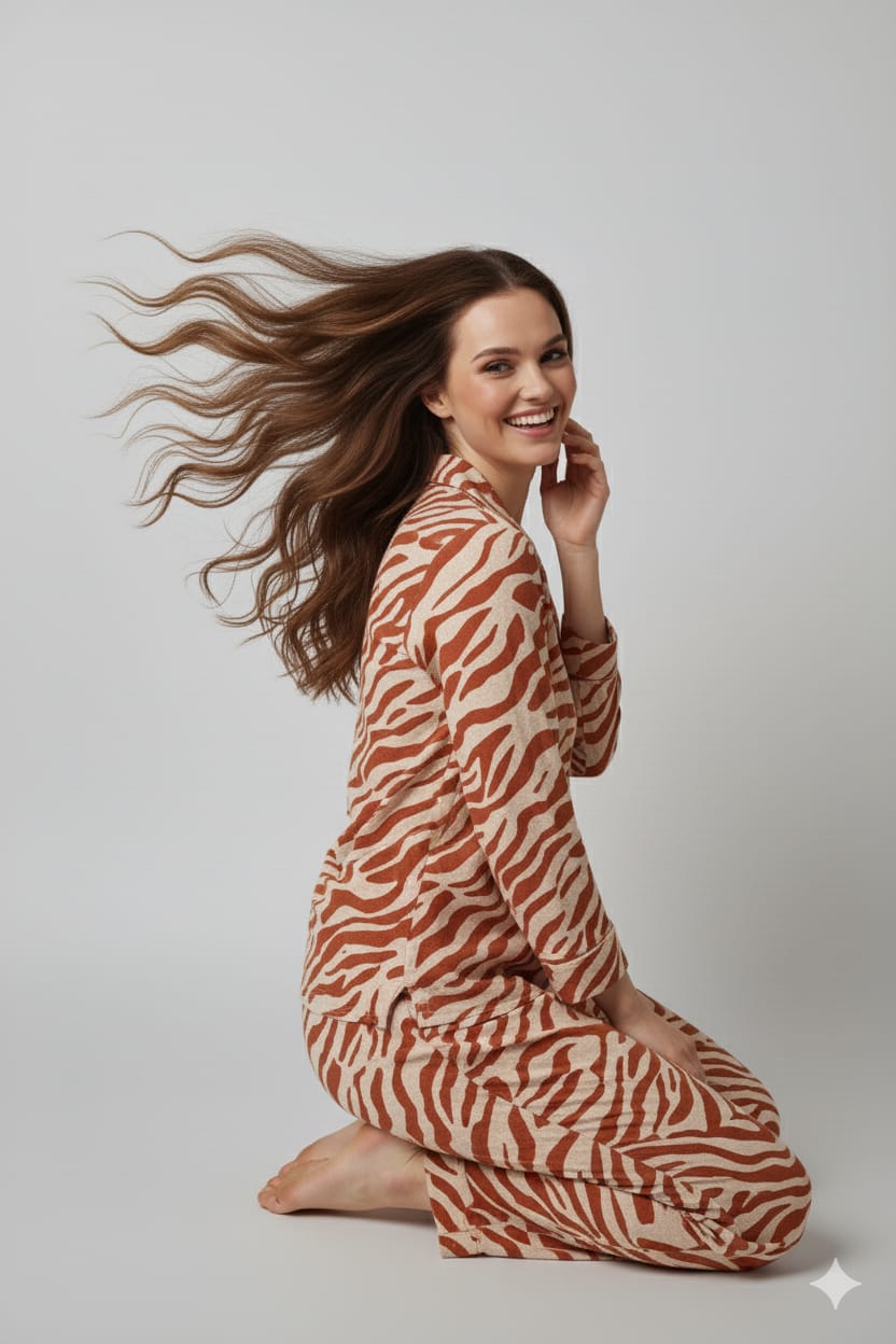 • Wild Elegance Beige & Rust Zebra Print Unstitched Suit