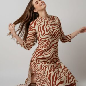 Be the first to review “Wild Elegance Beige & Rust Zebra Print Unstitched Suit – 21”